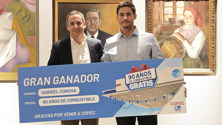 11 de diciembre de 2025.- En el marco de la celebración de sus 90 años, Copec anunció al ganador del premio “90 años de combustible gratis”, el reconocimiento más significativo que la compañía ha entregado en su historia. El beneficiario es Gabriel Concha, de 27 años, quien se adjudicó este beneficio que contempla un monto anual para cargar combustible durante las próximas nueve décadas. El monto se cargará cada mes de enero a su cuenta Full Copec y podrá ser traspasado a un heredero directo, dada la naturaleza heredable del premio.